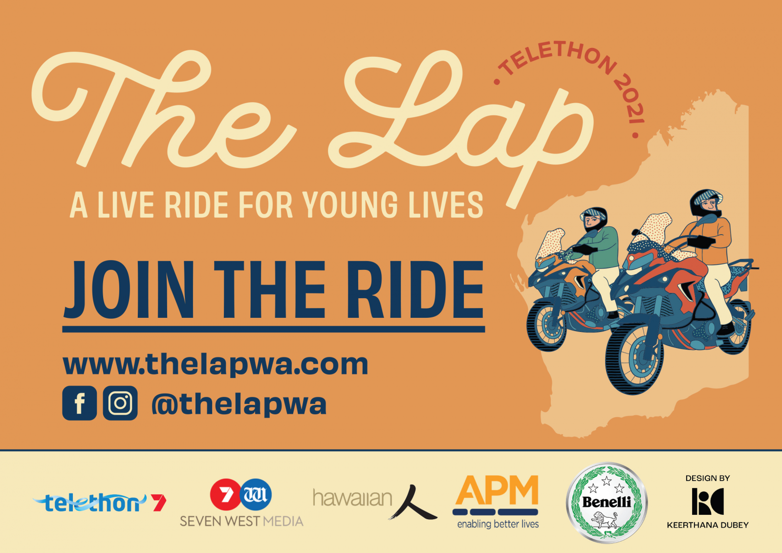 In a time when we’re separated by border closures and restrictions, this adventure seeks to be a uniting cause to bring us together in support of young West Australians and their families. With 35 events across the State, The Lap is set to inspire and unite our statewide community through live music events, visits and fundraising events at Public Schools, activations at local gyms and visits to recognise local business who pledge donations. All ticket sales, donations, merchandise sales and fundraising efforts will go to Telethon. But if supporters can’t make it to events they can donate online and be a part of the ride to save young lives. Email today to hear about the activations in your area or to request a visit from the team.