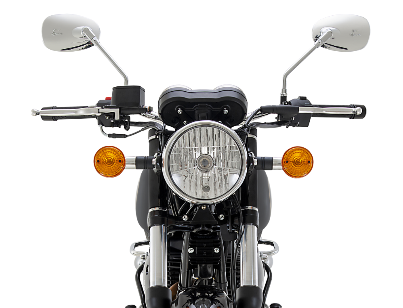 La Imperiale 400 cuenta con un faro redondo clásico que combina la elegancia atemporal con la eficiencia moderna. Este faro garantiza una excelente visibilidad durante los viajes nocturnos, lo que mejora tanto la seguridad como el estilo. Los indicadores grandes y brillantes se suman a su encanto retro y, al mismo tiempo, ofrecen una señalización clara.