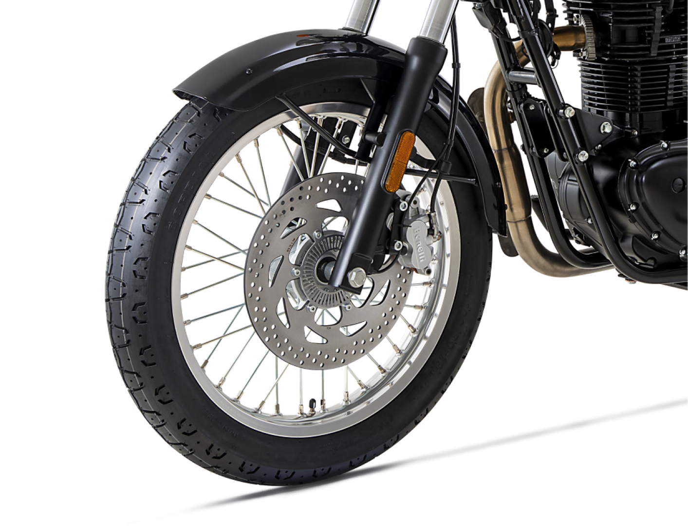 La Imperiale 400 está equipado con un potente sistema de frenos delanteros, con un disco de 300 mm con una pinza flotante de dos pistones. Esta configuración proporciona una potencia de frenado y un control excepcionales, lo que garantiza la seguridad del conductor incluso en condiciones difíciles. Las ruedas con radios mejoran aún más su aspecto clásico a la vez que ofrecen durabilidad.