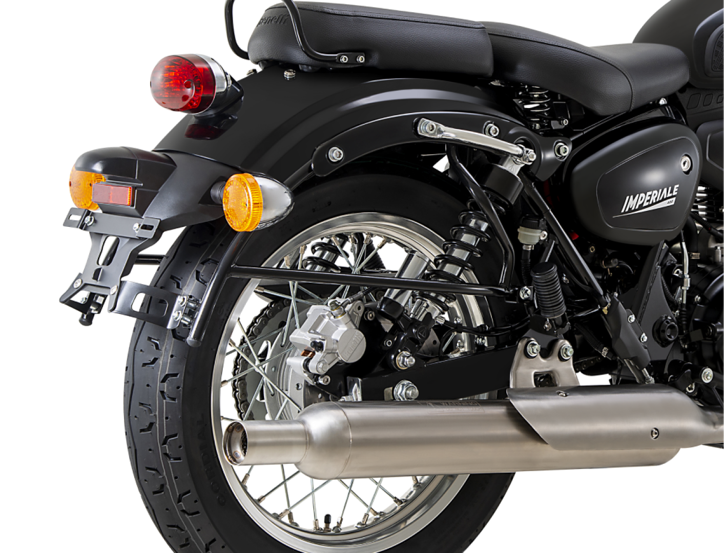 La parte trasera de la Imperiale 400 cuenta con amortiguadores dobles con precarga ajustable, lo que garantiza una conducción cómoda en varios terrenos. El diseño clásico se complementa con el escape y la luz trasera cromados, que realzan su atractivo vintage y, al mismo tiempo, proporcionan funcionalidad y estilo.