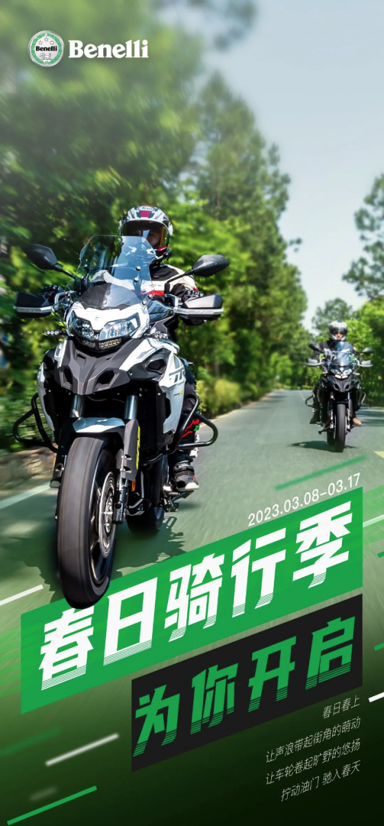 Benelli春季骑行季 定金膨胀购车赠三箱