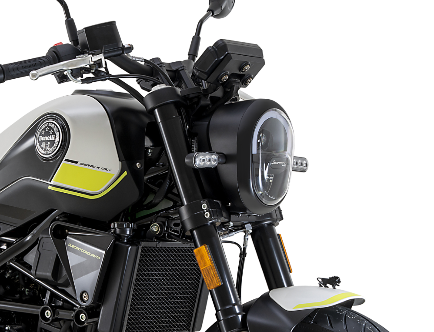 The distinctive LED headlight provides excellent visibility and adds a modern touch to the classic design of the Leoncino 249, enhancing both style and safety.