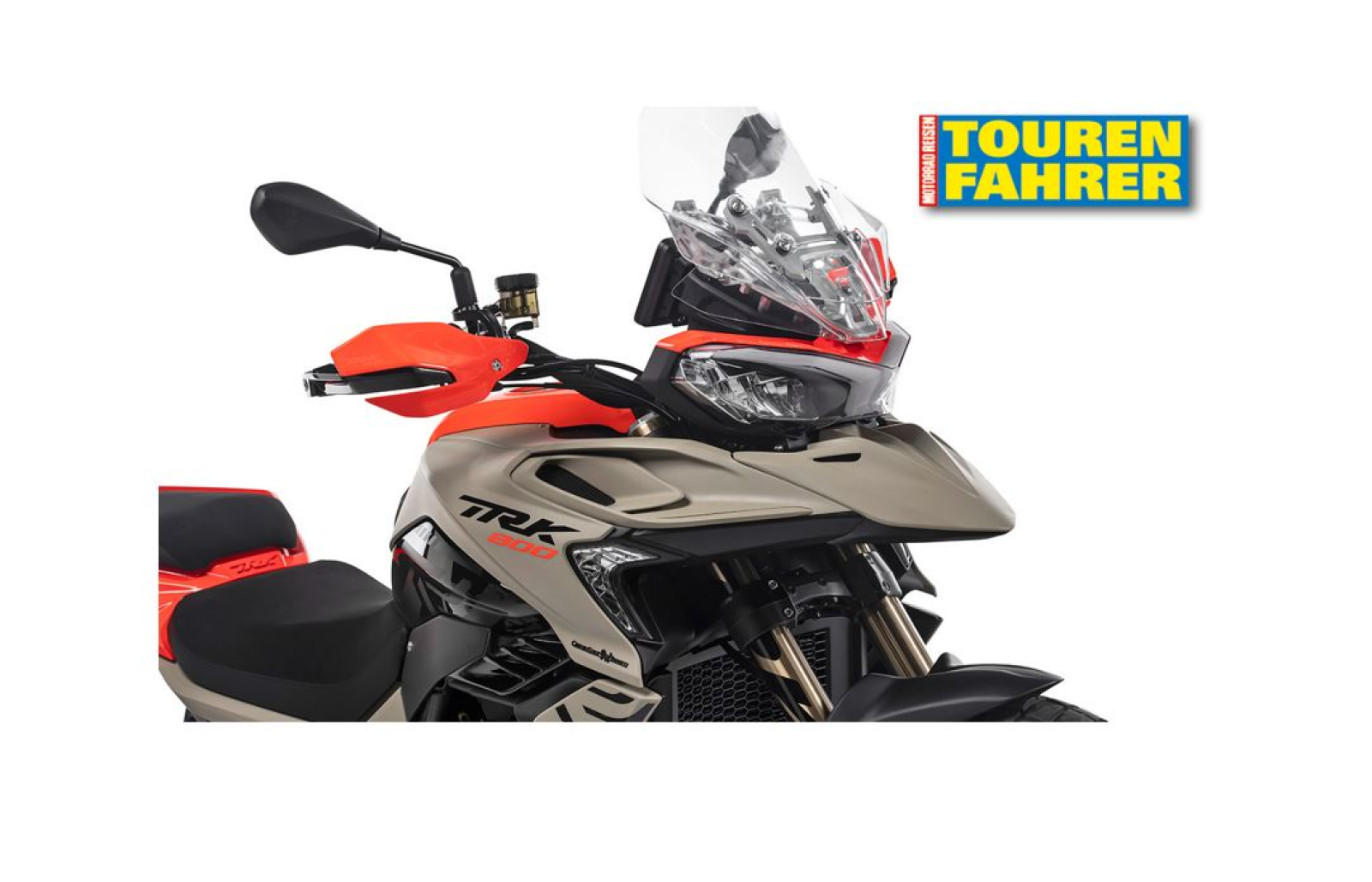 - "Benelli hat einige gestalterische Elemente vom kleinen Schwestermodell übernommen und dezent weiterentwickelt. Hierzu zählen die Frontpartie und der vordere Kotflügel, die nun konischer und dynamischer gezeichnet sind, sowie die Doppelscheinwerfer, die bei der TRK 800 mit LED und Tagfahrlicht ausgestattet sind."