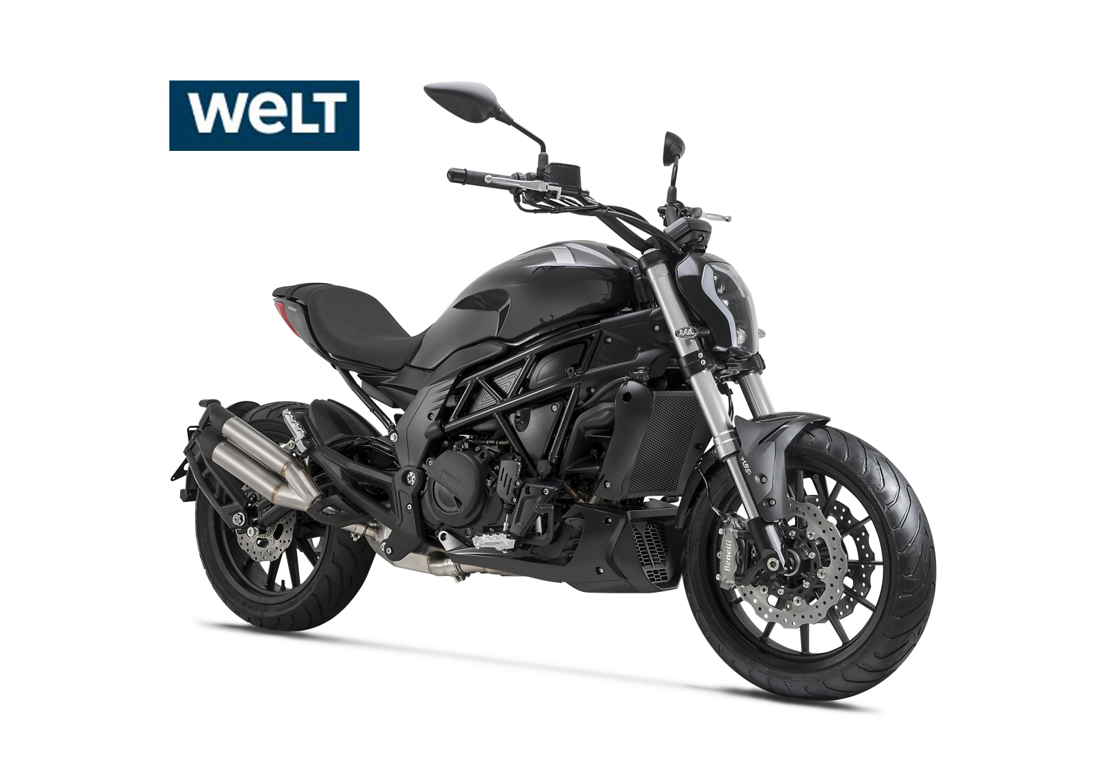 - "Der große LED-Scheinwerfer mit insektenartigem Tagfahrlicht sowie Projektionslinse im unteren Bereich der Benelli ist genauso exzentrisch gestaltet wie die Seitenansicht des Halbliter-Bikes mit der ansehnlichen Gitterrohr-Rahmenkonstruktion. Auch der markante Doppel-Endschalldämpfer mit dem sympathischen Sound sticht ins Auge."