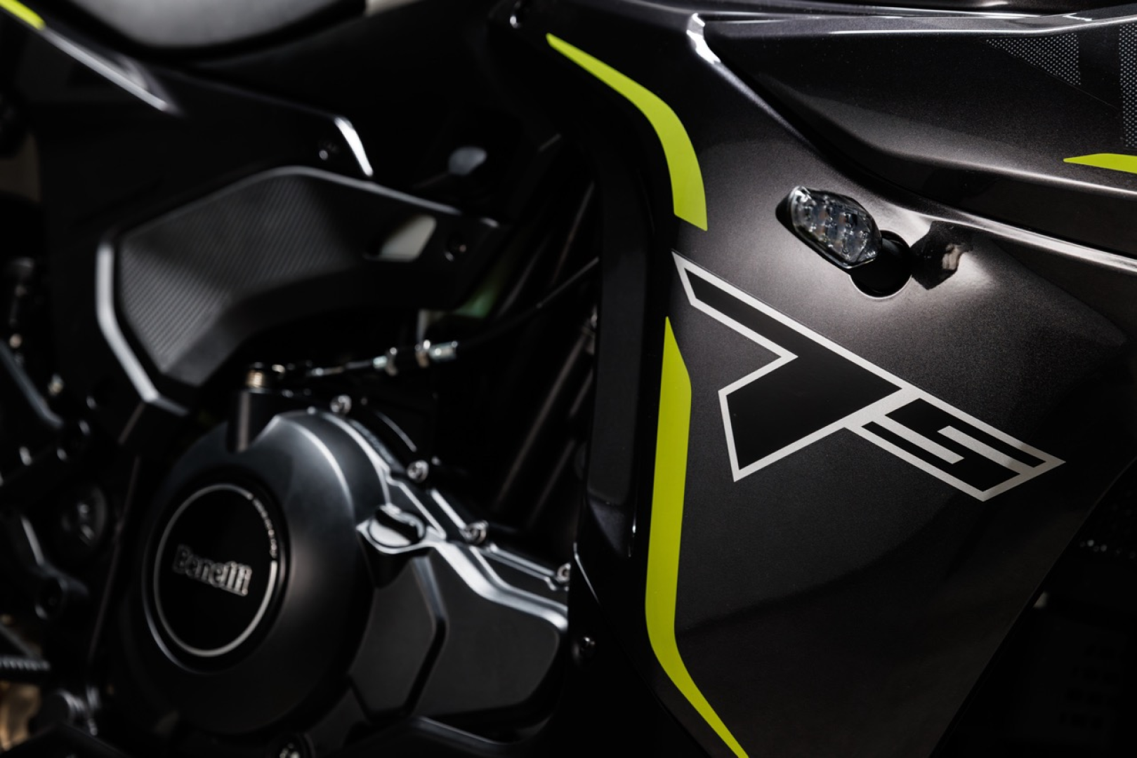 Los faros delanteos DRL diseñan una forma luminosa inspirada en los afilados colmillos de un león, símbolo histórico de la marca Benelli: estos elementos están completamente separados de los módulos centrales de luces largas y cortas.