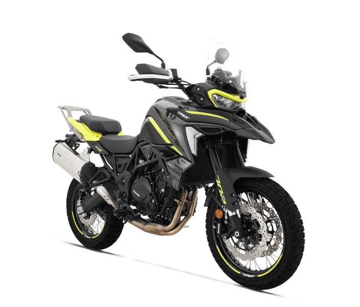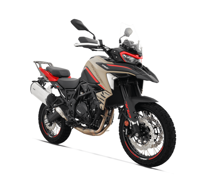 The Benelli TRK 702X is equipped with a high-performance braking system, featuring dual front disc brakes with 320 mm rotors and 4-piston calipers, ensuring precise and powerful stopping power. The rear brake complements this setup with a 260 mm disc and a single-piston caliper. This advanced braking system, combined with Pirelli Scorpion Rally STR tires, provides exceptional grip and control on various terrains, enhancing both safety and performance.