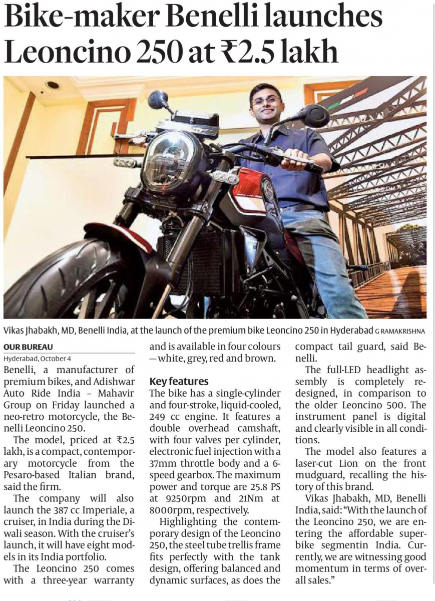 Benelli India launches Leoncino 250 at INR 2.5 lakhs (Ex-Showroom)
