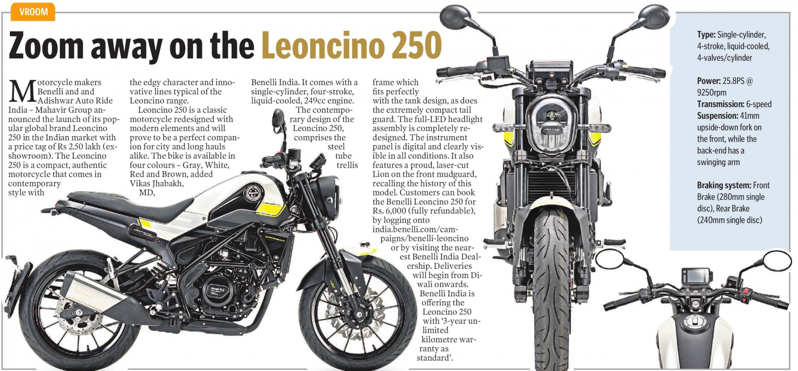 It also features a proud, laser-cut Lion on the front mudguard, recalling the history of this model. Customers can book the Benelli Leoncino 250 for Rs. 6,000 (fully refundable), by logging onto india.benelli.com/campaigns/benelli-leoncino or by visiting the nearest Benelli India Dealership. Deliveries will begin from Diwali onwards. Benelli India is offering the Leoncino 250 with ‘3-year unlimited kilometre warranty as standard’.