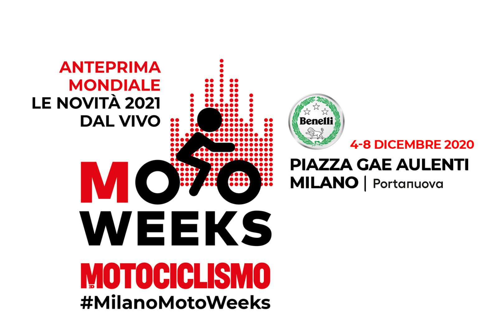 Sarà Benelli ad inaugurare la kermesse "MotoWeeks" 2020, una vera e propria esposizione organizzata da Rivista Motociclismo nel cuore di Milano, in Piazza Gae Aulenti, dove dal 4 all'8 dicembre si potranno vedere dal vivo le novità 2021 della Casa del Leoncino.