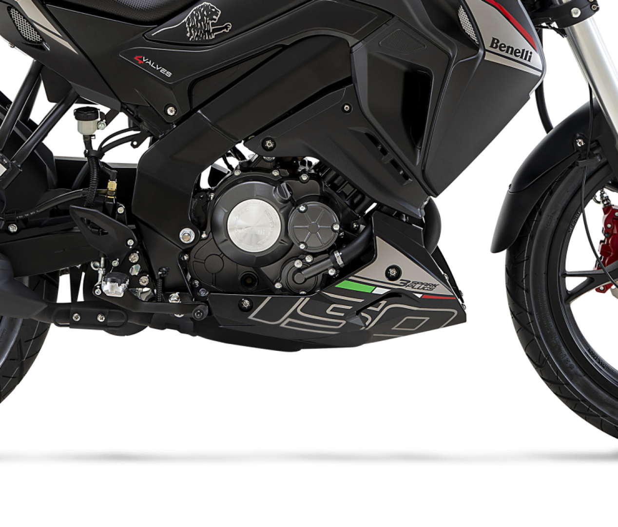 The Benelli 3-Spark Plug System engine design offers superior combustion efficiency, allowing for performance, rideability, and acoustics beyond the capability of lesser naked sport motorcycles.