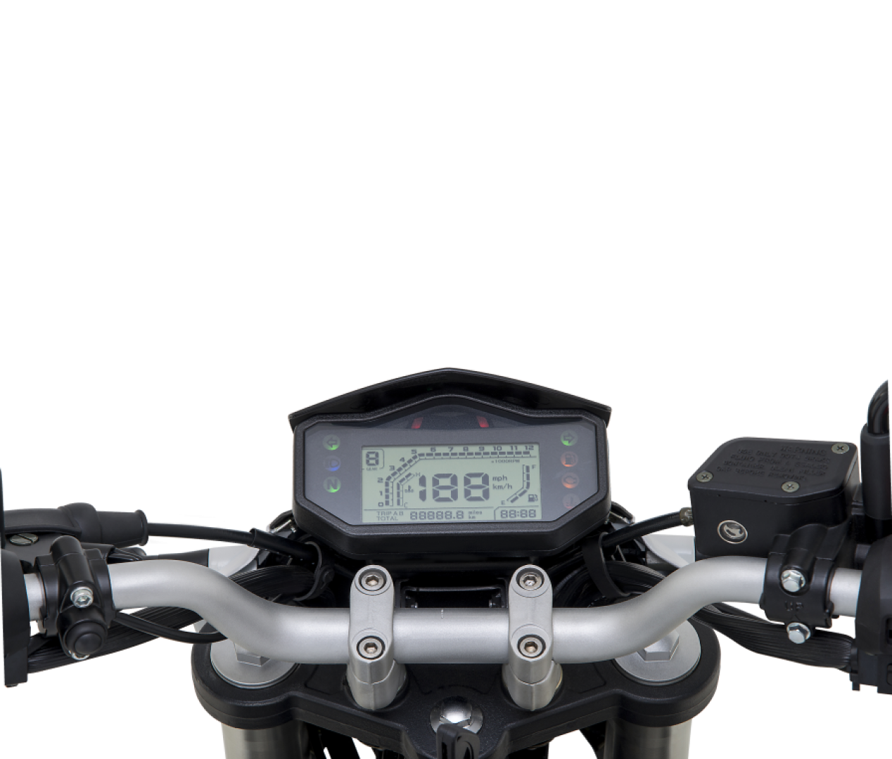 Intuitively designed and eminently readable amber digital instrumentation delivers its riders a full assortment of vital information in a glance.