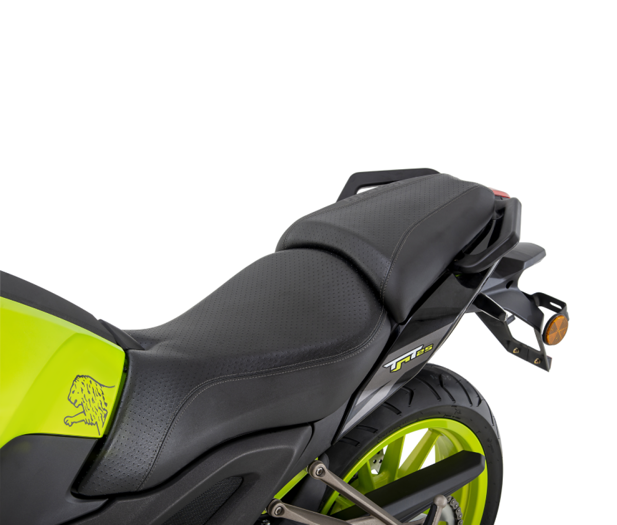 The TNT 25 2.0 Sport from Benelli offers an unparalleled riding experience with its ergonomically designed seat. Crafted for both comfort and style, this seat ensures a smooth ride even on the longest journeys, allowing you to stay focused on the thrill of the road ahead. Enjoy the perfect blend of performance and luxury with Benelli.