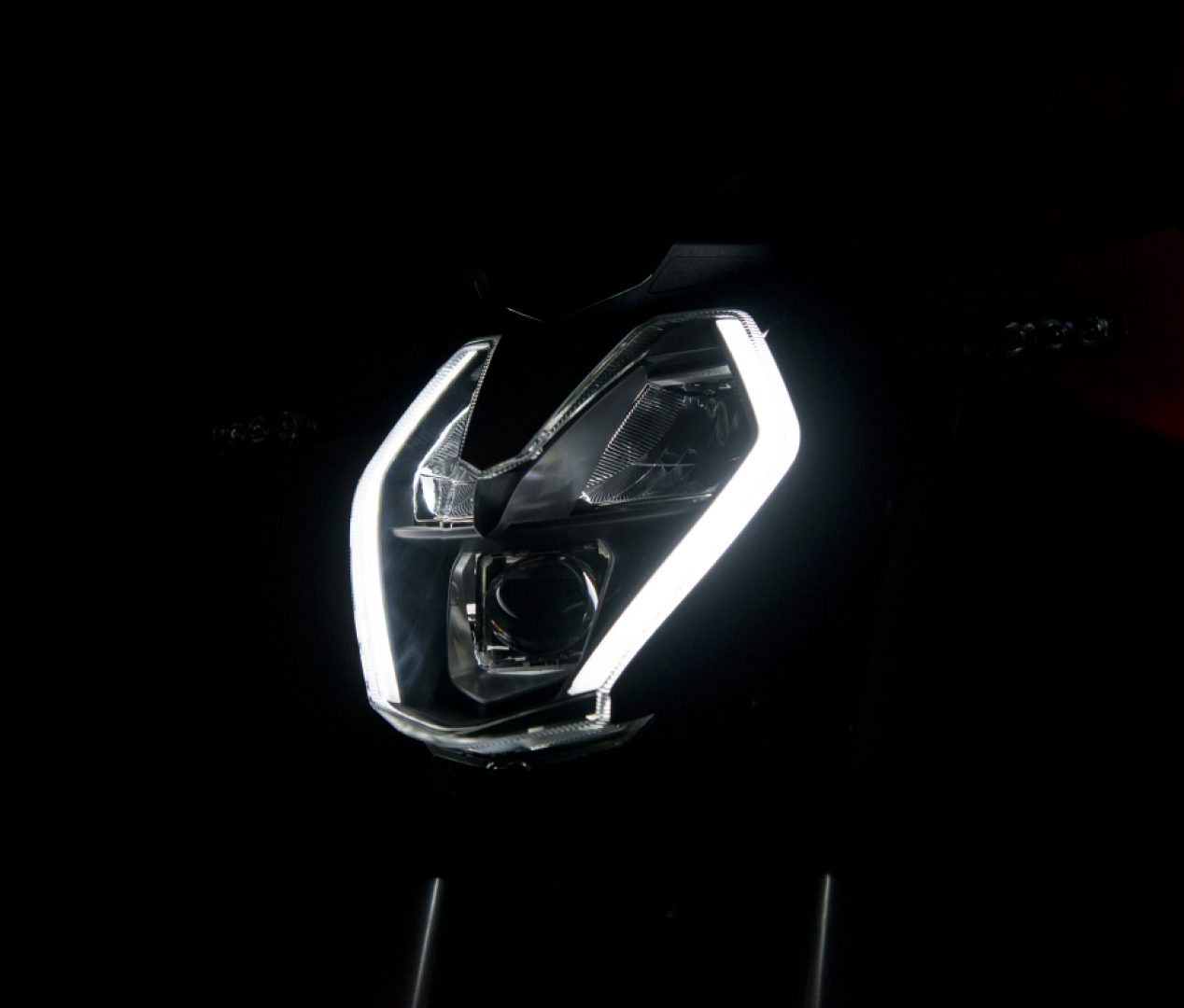 The triple headlight design sets the stage for the TNT 25 2.0 Sport's electric new style.