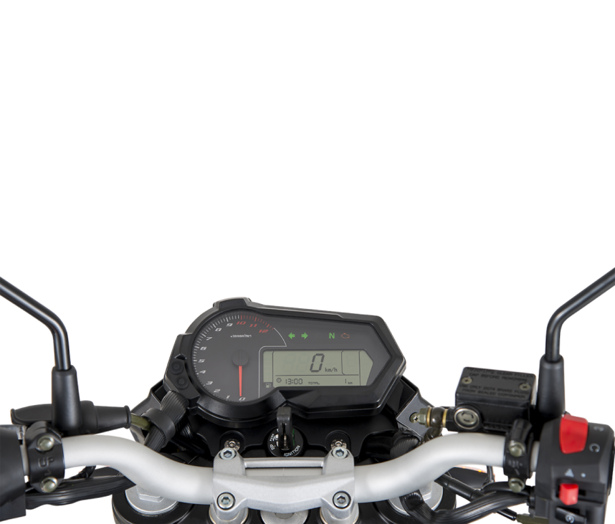 The Benelli TNT135 boasts a high-performance digital dashboard that provides all essential information at a glance. The clear, easy-to-read display includes speed, fuel level, trip meter, and more. This modern feature ensures that riders can stay informed and in control, enhancing the overall riding experience.