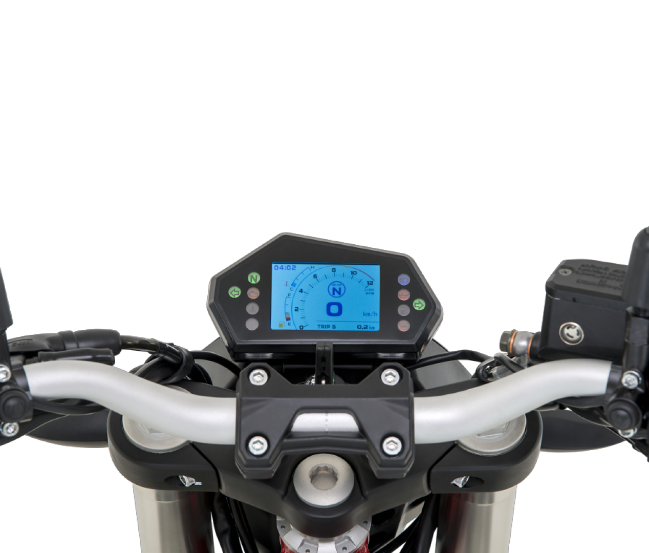 El panel de pantalla de cristal líquido (TFT LCD) con transistor de película delgada y forma asimétrica proporciona una sensación más parecida a la de un caza a reacción que a la de un luchador callejero.