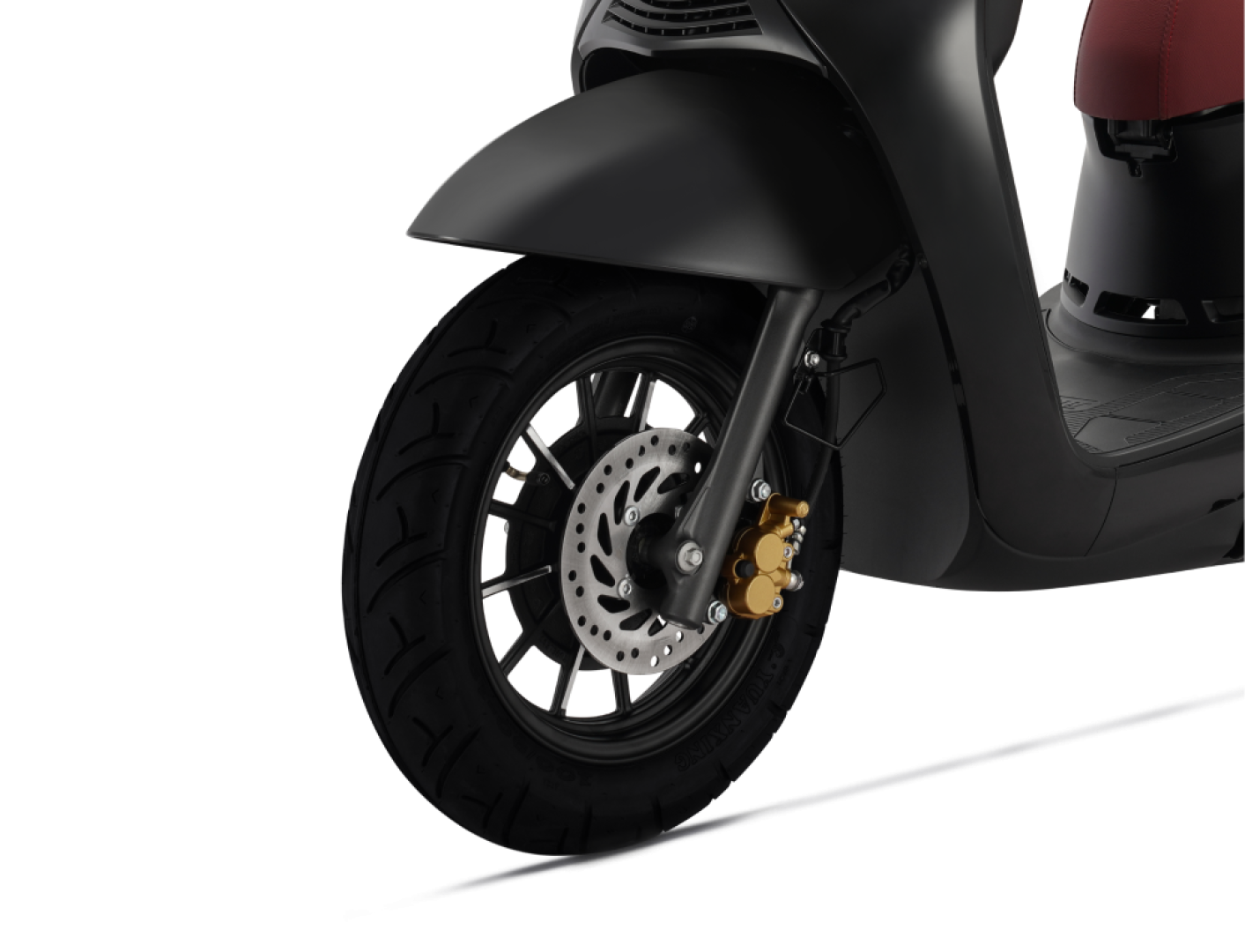 12” aluminum wheels add a sleek touch to its impressive retro style. Accompanied with Profile 90 tires, special for the city rides. 190mm Disc Brake