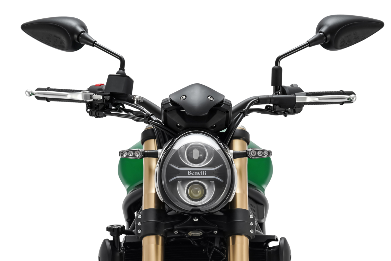 The front design of the 752S features a round LED headlight, blending retro style with modern technology. This headlight not only provides excellent nighttime visibility but also contributes to the bike's robust and aggressive look, highlighting its distinctive character.
