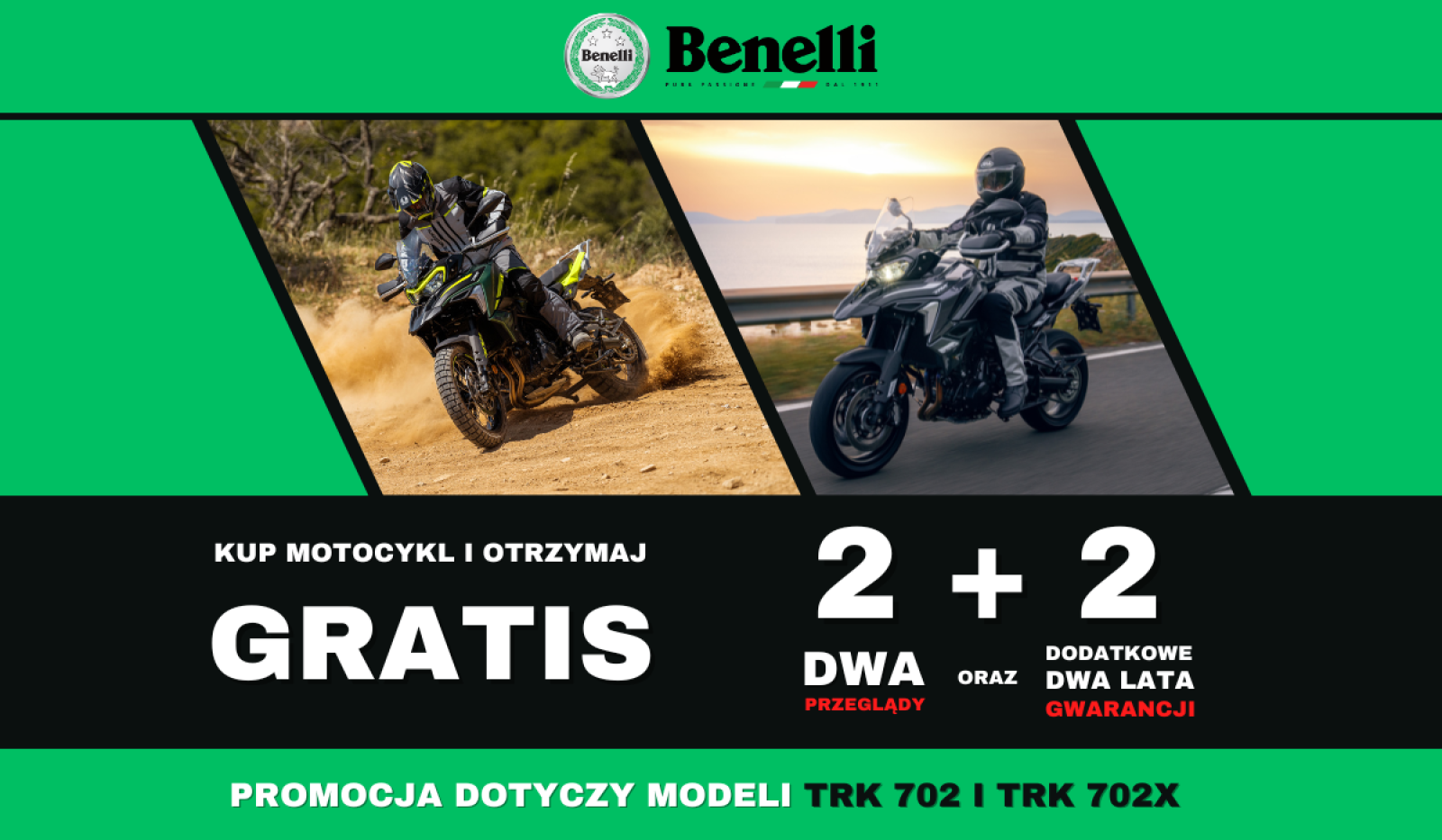 Przygotowaliśmy dla Ciebie wyjątkową ofertę na motocykle Benelli TRK 702 i TRK 702X, która sprawi, że przyszły sezon będzie jeszcze bardziej ekscytujący.