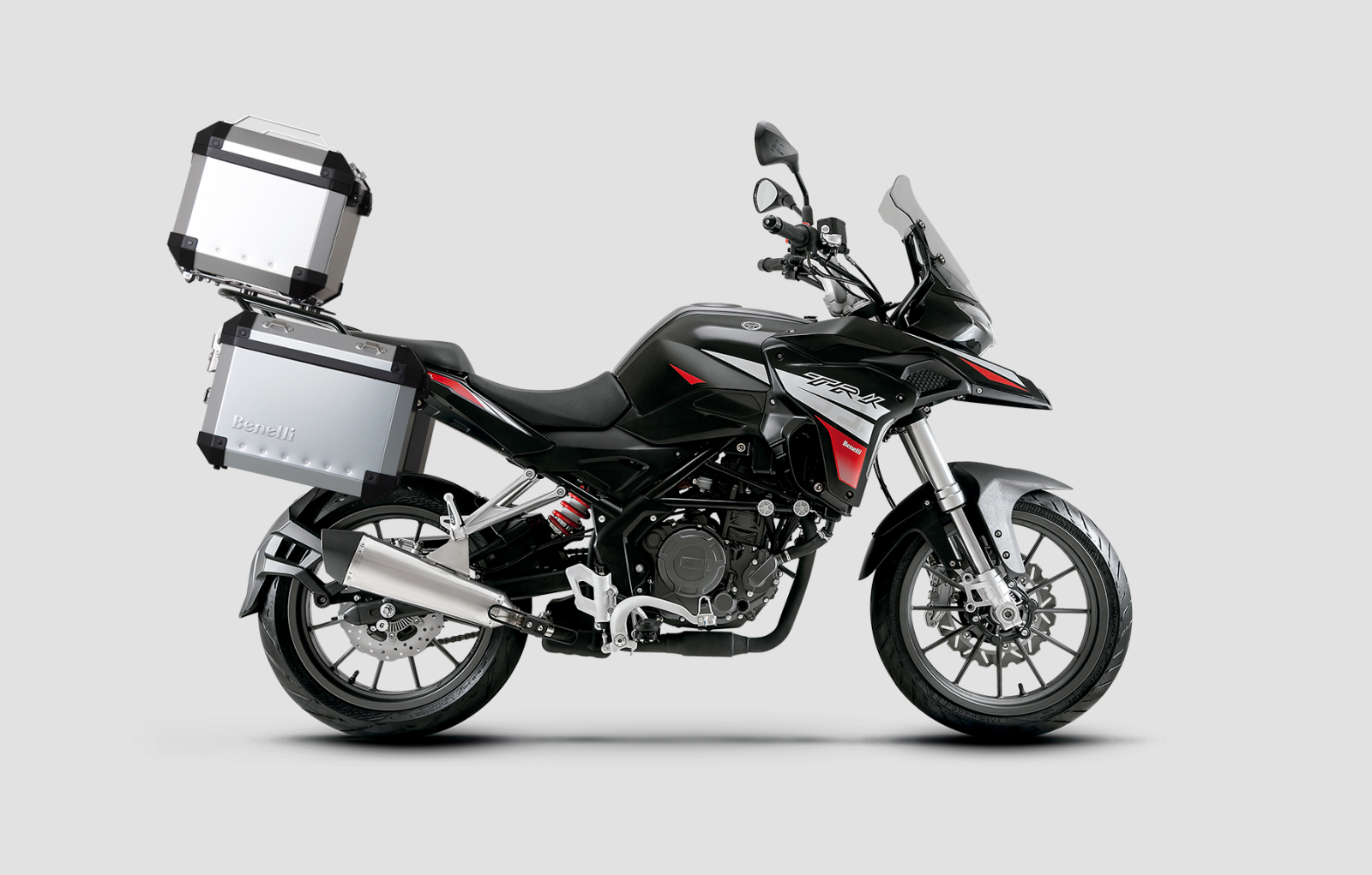 Agora este modelo pode vir equipado com PACK ALU composto por Top Case e Malas Laterais originais Benelli, fabricadas integralmente em alumínio.