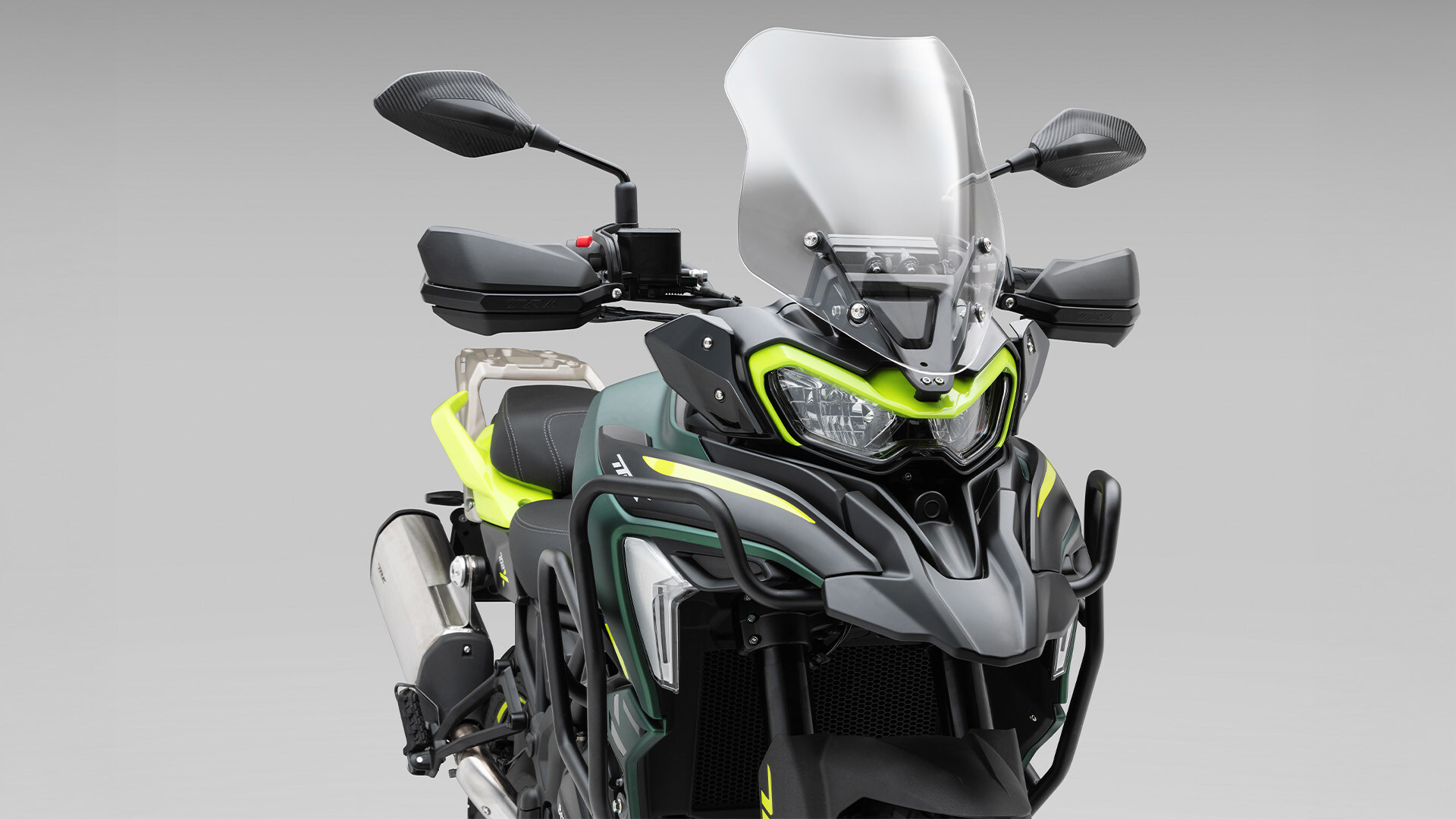 Na zona dianteira, a TRK 702/X Euro5+ passa a incluir de origem crashbars, concebidas para proteger a moto em caso de queda, mantendo o seu visual distinto graças à iluminação full LED.